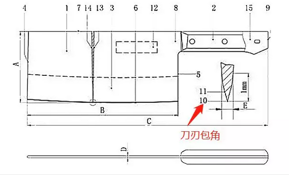 圖:菜刀部件結(jié)構(gòu)示意圖(10-刀刃包角)